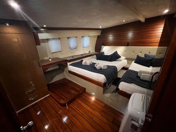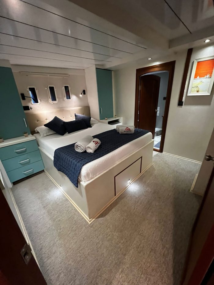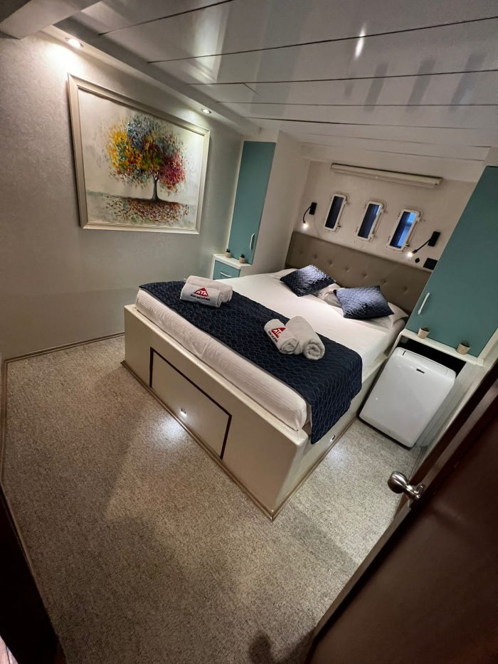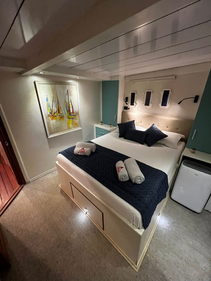 Total Cabin(s) for Guests: 6Max. Sleeping Guests on board: 12Master Cabin(s) for Guests: 2Twin Cabins for Guests: 2Double Cabin for Guests: 1
