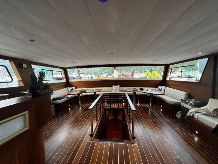 Hull Material: WoodDeck Material: TeakSuperstructure Material: WoodMain Engine(s) Fuel: DieselNumber of Fuel Tank(s): 8Fuel Tank(s) Capacity: 14.000 Ltr