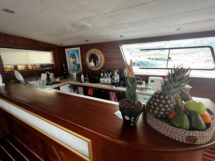 Number of Main Engine: 2M/E Builder and HP : MAN – 240 HP PlusMaximum Speed: 13 Knots/hCruising Speed: 11 Knots/hNumber of Auxiliary Engines: 2Builder and total Kva of Aux. Engines: Kohler 35 Kva Kubatu 27 KvaAC/DC Voltage : 220 V / 12 VJoker Boat : Yes ( 5.20 mtr. & 100 Bhp Honda)