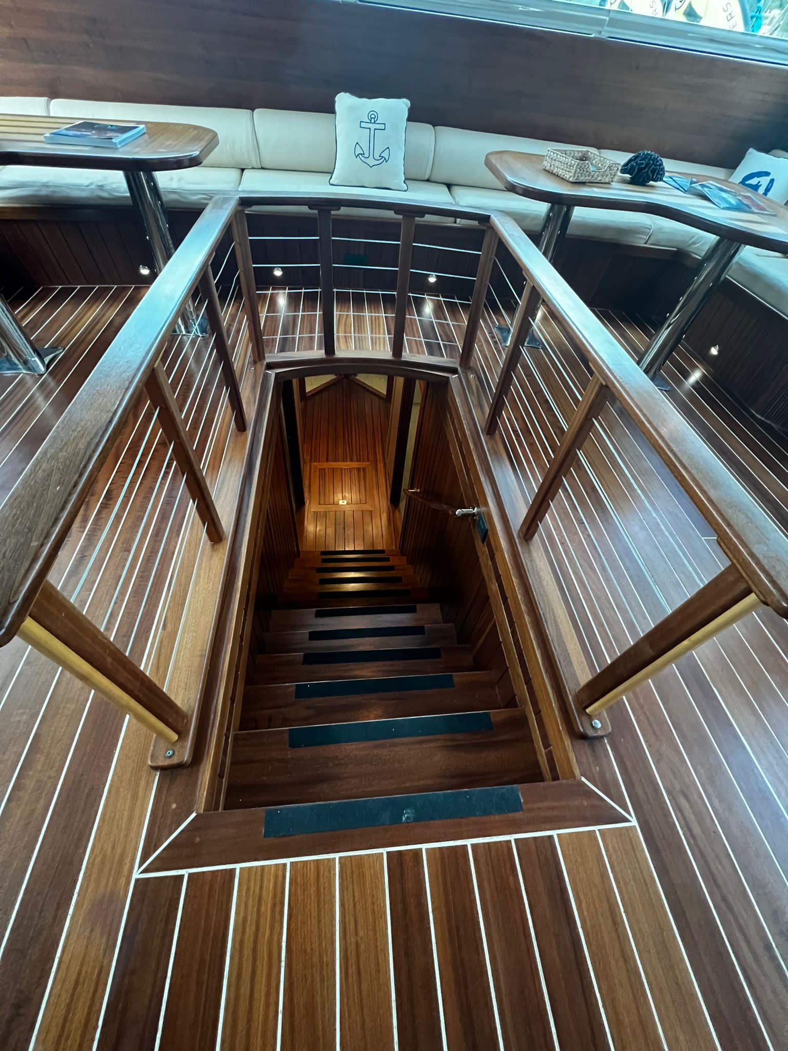 1 x Wheelhouse1 x Standard Steering Wheel1 x Teak on Deck1 x Teak on Foredeck1 x Bar on Deck1 x Deck Freezer1 x Deck Cushions1 x Foredeck Cushions1 x Deck Shower with Hot/Cold Water1 x Fender for Side1 x Boat Hook1 x Mooring Lines1 x Bucket1 x Funnel1 x Deck Brush1 x Fresh Water Hose1 x Pressure Washer1 x Deck Crane